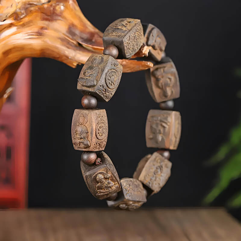 Браслет ручной работы из натурального агарового дерева — символ духовной силы и внутреннего равновесия. Каждая бусина вырезана с изображением Будды и священных символов, приносящих защиту и благополучие. Аромат агарового дерева наполняет пространство ощущением спокойствия и глубины медитации. Подходит как талисман для практик, а также как стильное украшение с особой энергетикой.