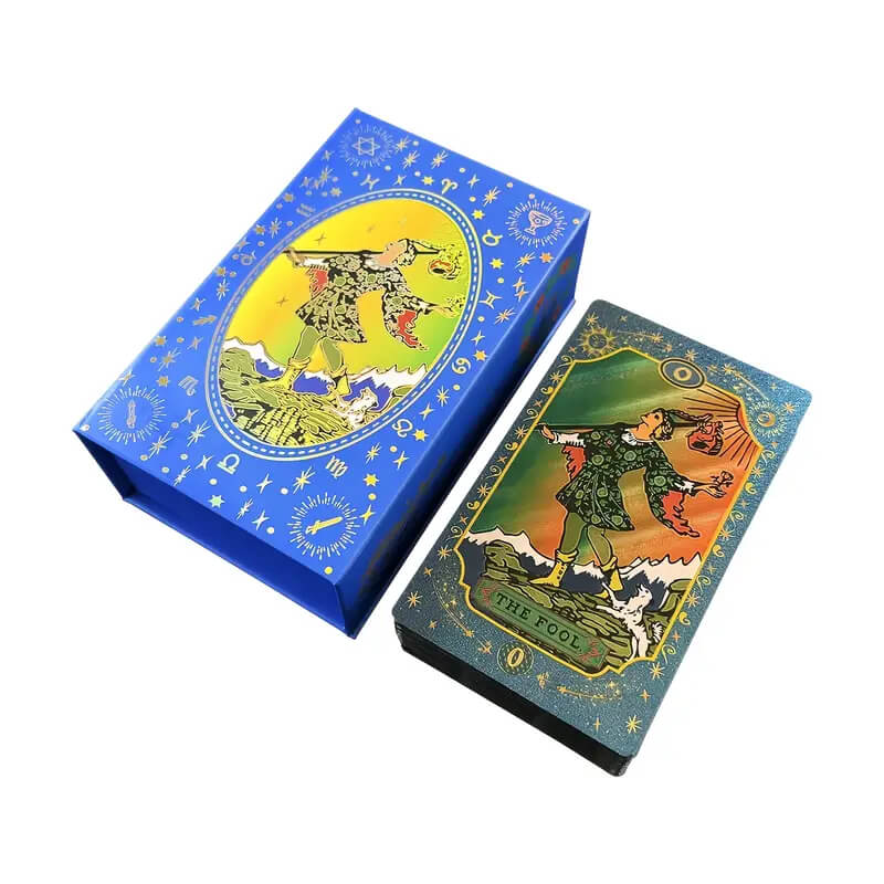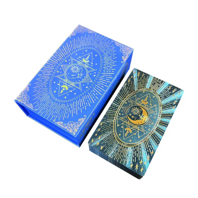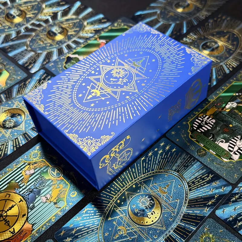 Набор Таро «Синяя Звезда» — это изысканная колода, созданная для тех, кто ищет вдохновение и красоту в каждом раскладе. Карты оформлены в насыщенной палитре с мерцающими золотыми акцентами и украшены тонкой фольгой, которая придаёт каждой карте эффект сияния звёздного неба.