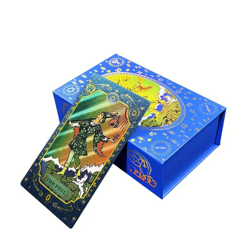 - 78 карт Таро с золотистым фольгированием;