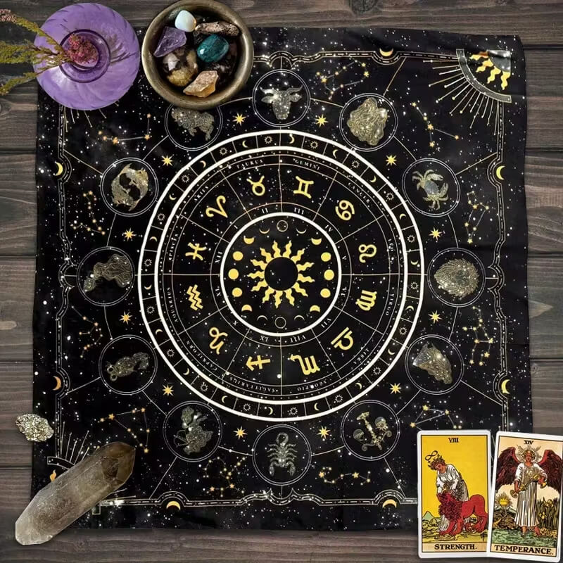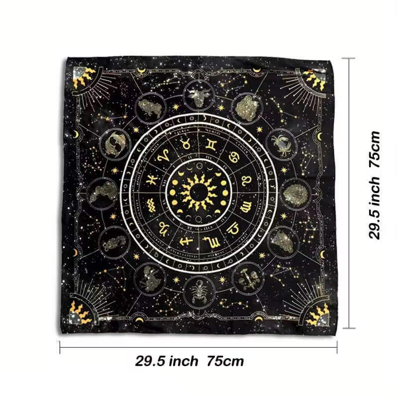Скатерть для Таро «12 зодиаков», 75×75 см, черный цвет.