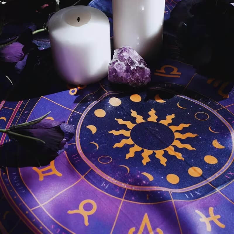 Скатерть для Таро «12 зодиаков», 75×75 см, фиолетовый цвет.