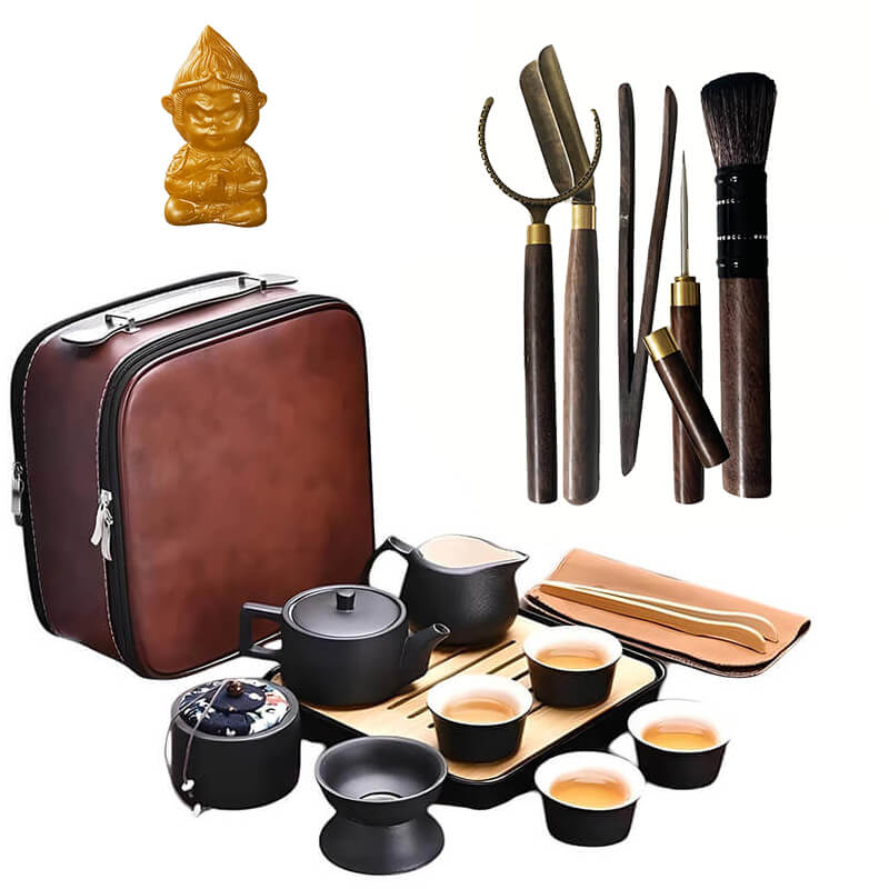Набор для чайной церемонии «Циндао» с инструментами и чайной фигуркой Бог богатства, бренд Eleven Stones.