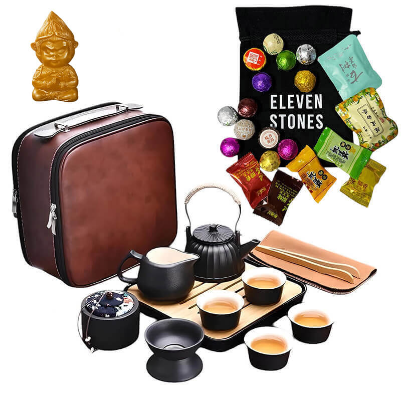 Набор для чайной церемонии «Шанхай» Eleven Stones с чаем пуэр 20 шт и чайной фигуркой Бога богатства.