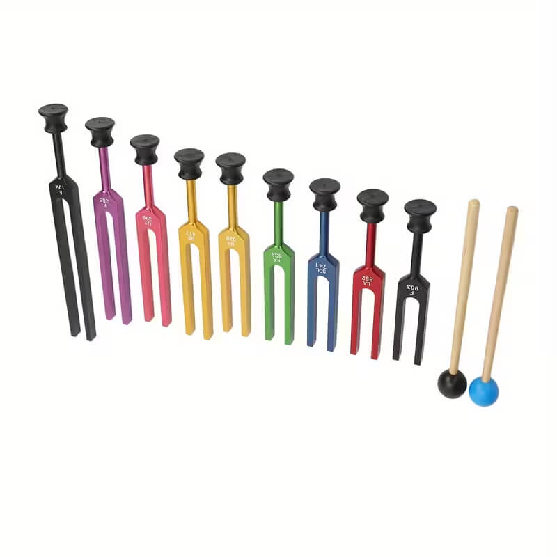 Цветной набор Solfeggio-камертонов предназначен для звукотерапии, медитаций и работы