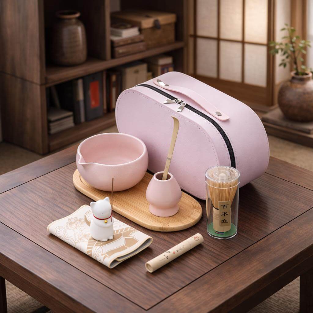 Компактний рожевий кейс зручний для зберігання та транспортування – набір підійде для щоденного чайного ритуалу або як стильний подарунок.