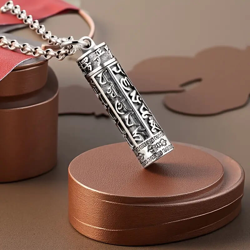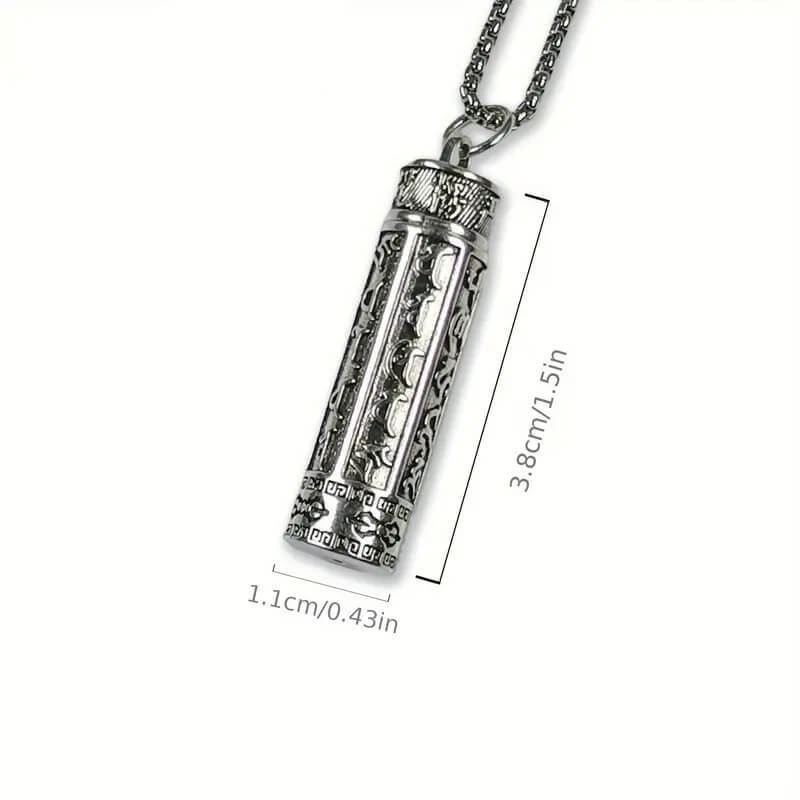 Кулон «Буддійська капсула» з нержавіючої сталі – це стильний і функціональний амулет з гравіюванням мантри, всередині якого можна зберігати маленьку записку, молитву або пам’ятний символ. Надійно закручується та не темніє.
