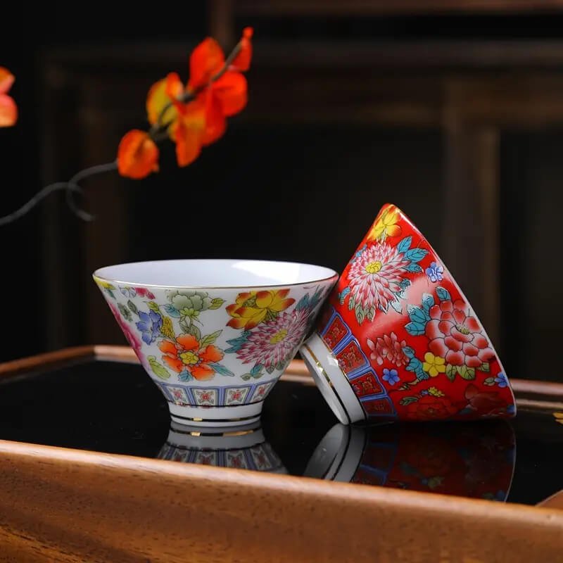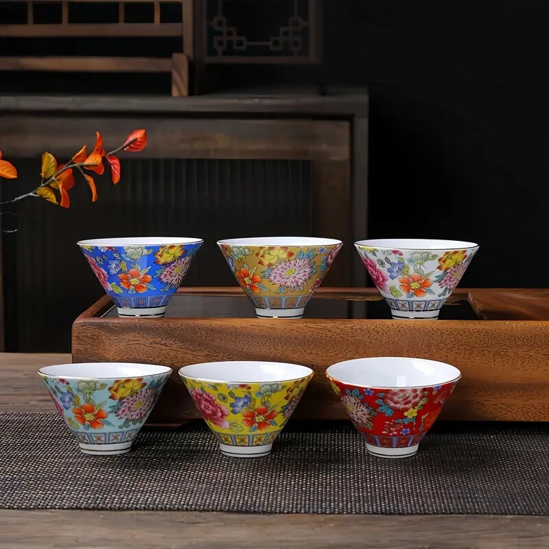 Набір фарфорових піал «Весняний сад» — витончена колекція для поціновувачів чаю та східної естетики. Кожна піала прикрашена ніжним квітковим орнаментом, що символізує пробудження та гармонію. Вироби виготовлені з міцного фарфору з глянцевим покриттям, яке підкреслює яскравість малюнка та елегантність форми.