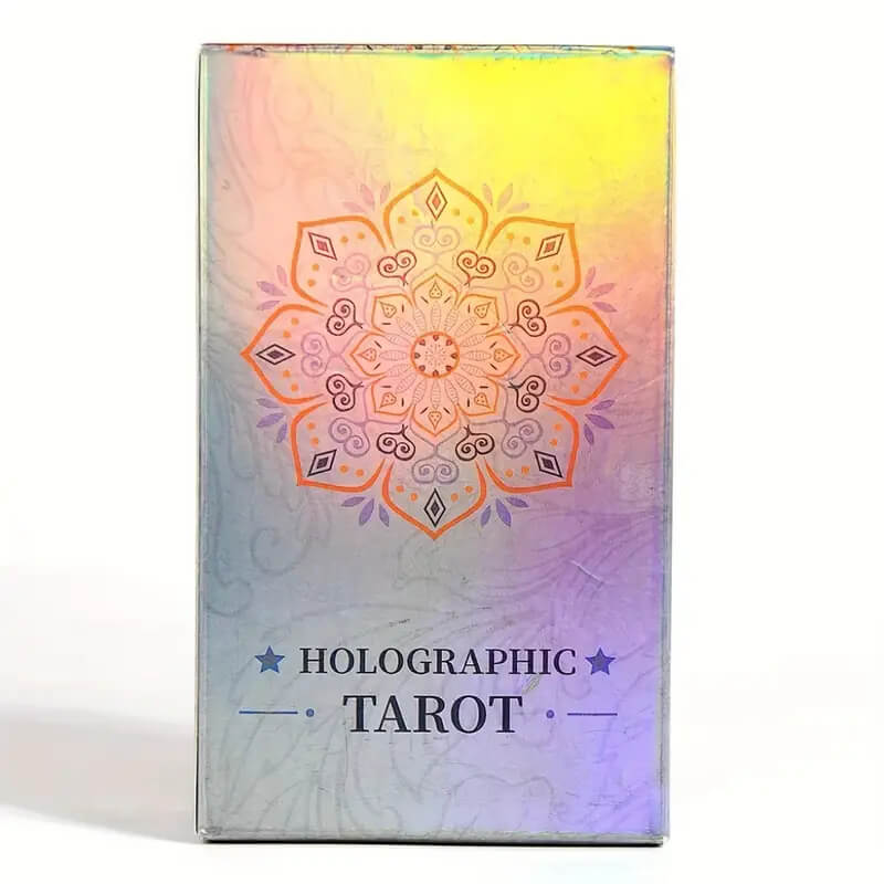 Голографічні картки Таро — це сучасна інтерпретація класичної колоди Райдера–Вейта, створена для тих, хто цінує естетику та чарівність візуальних ефектів. Поверхня кожної картки переливається всіма барвами веселки, створюючи неповторну гру світла під час кожного руху.
