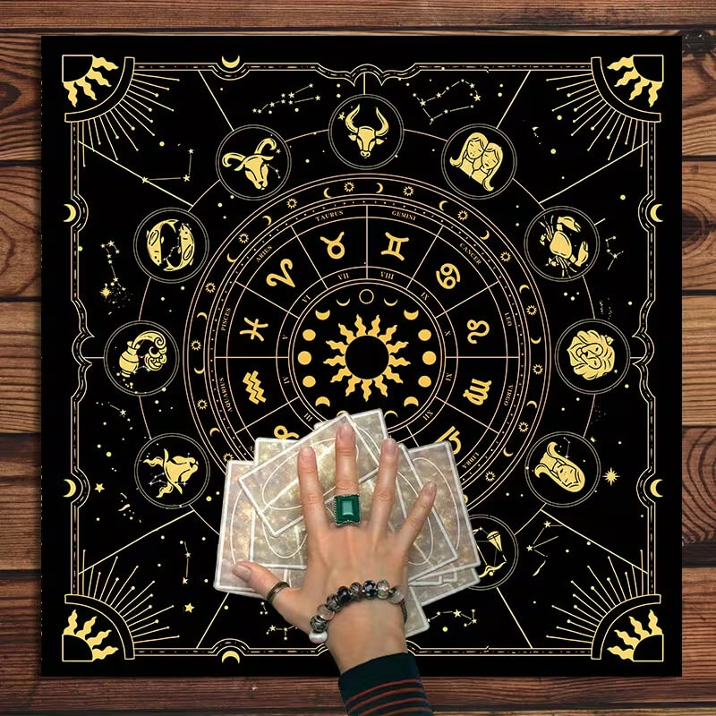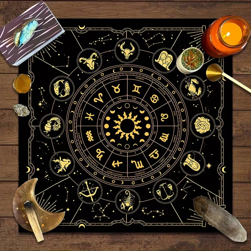 Скатертина для Таро «12 зодіаків», 75×75 см, жовтий колір.