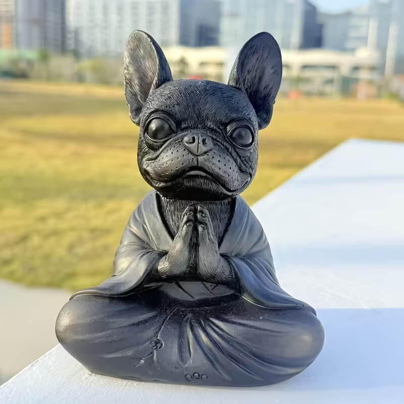 Чайна фігурка «Медитуючий французький бульдог», чорний колір – 14,5 см.