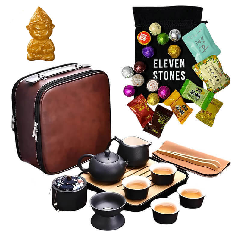 Набір для чайної церемонії «Ісин» Eleven Stones з чаєм пуер 20 шт і чайною фігуркою Бога багатства.