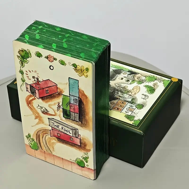 The Housing Tarot — унікальна колода, де кожна карта зображує архітектурні сцени та міські пейзажі. Ілюстрації виконані в акварельній техніці, що надає їм тепла та гармонії. Колода підходить для самопізнання, психологічних розкладів і медитативних практик. Її м’який візуальний стиль поєднує сучасність і символізм, роблячи кожне гадання особливим мистецьким процесом.