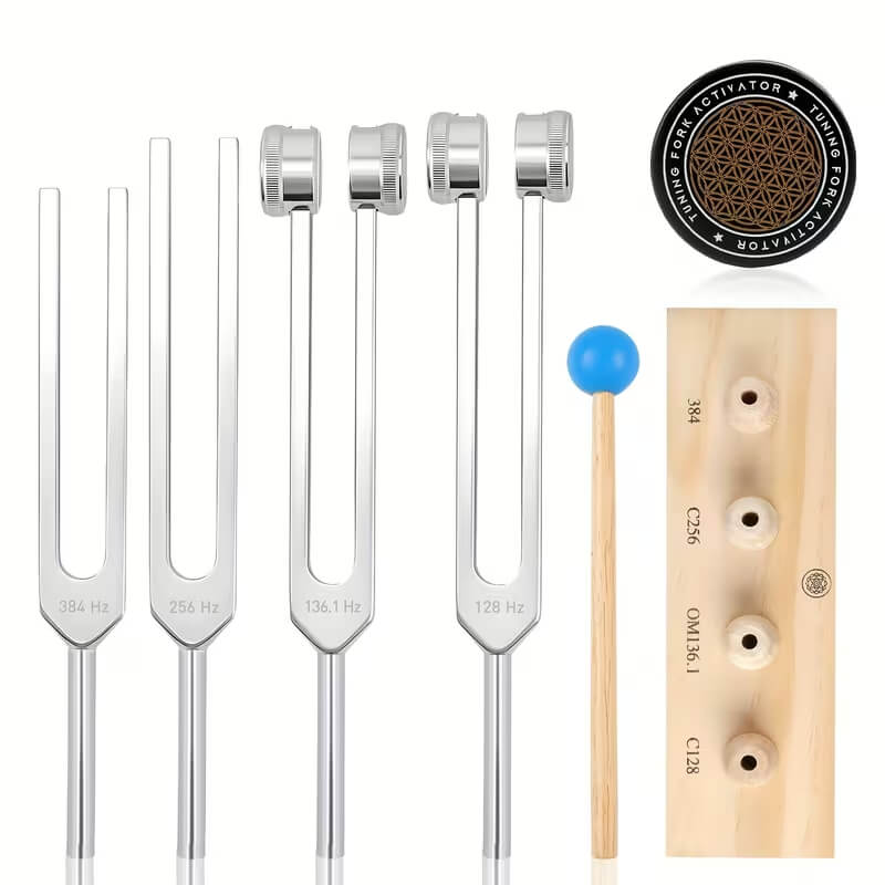 - 4 камертони з анодованого алюмінію з точною настройкою.