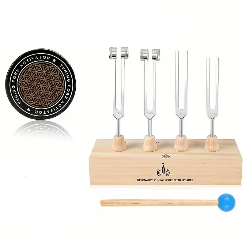 Компактний набір із чотирьох камертонів із дерев’яною резонаторною підставкою призначений