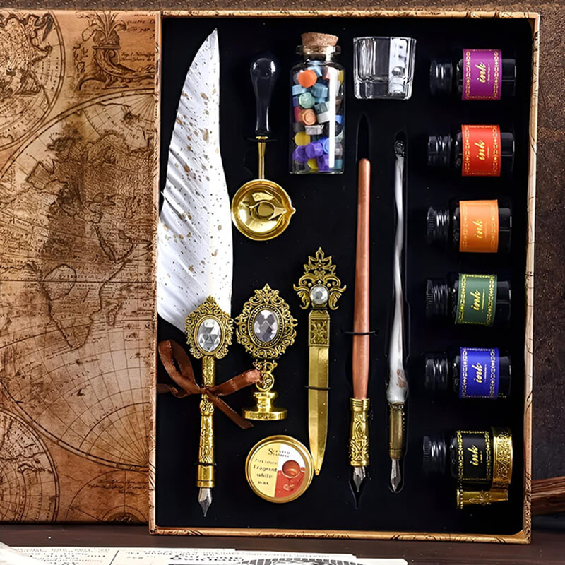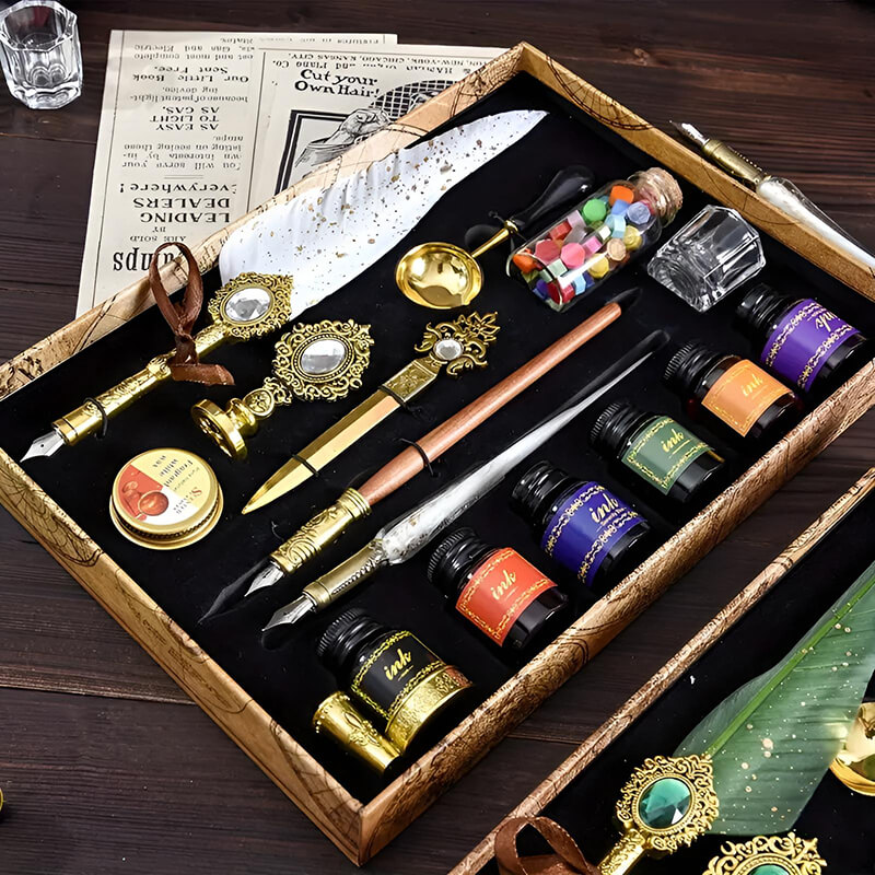 - Повний комплект для письма, створення сургучних печаток і художнього оформлення листів.